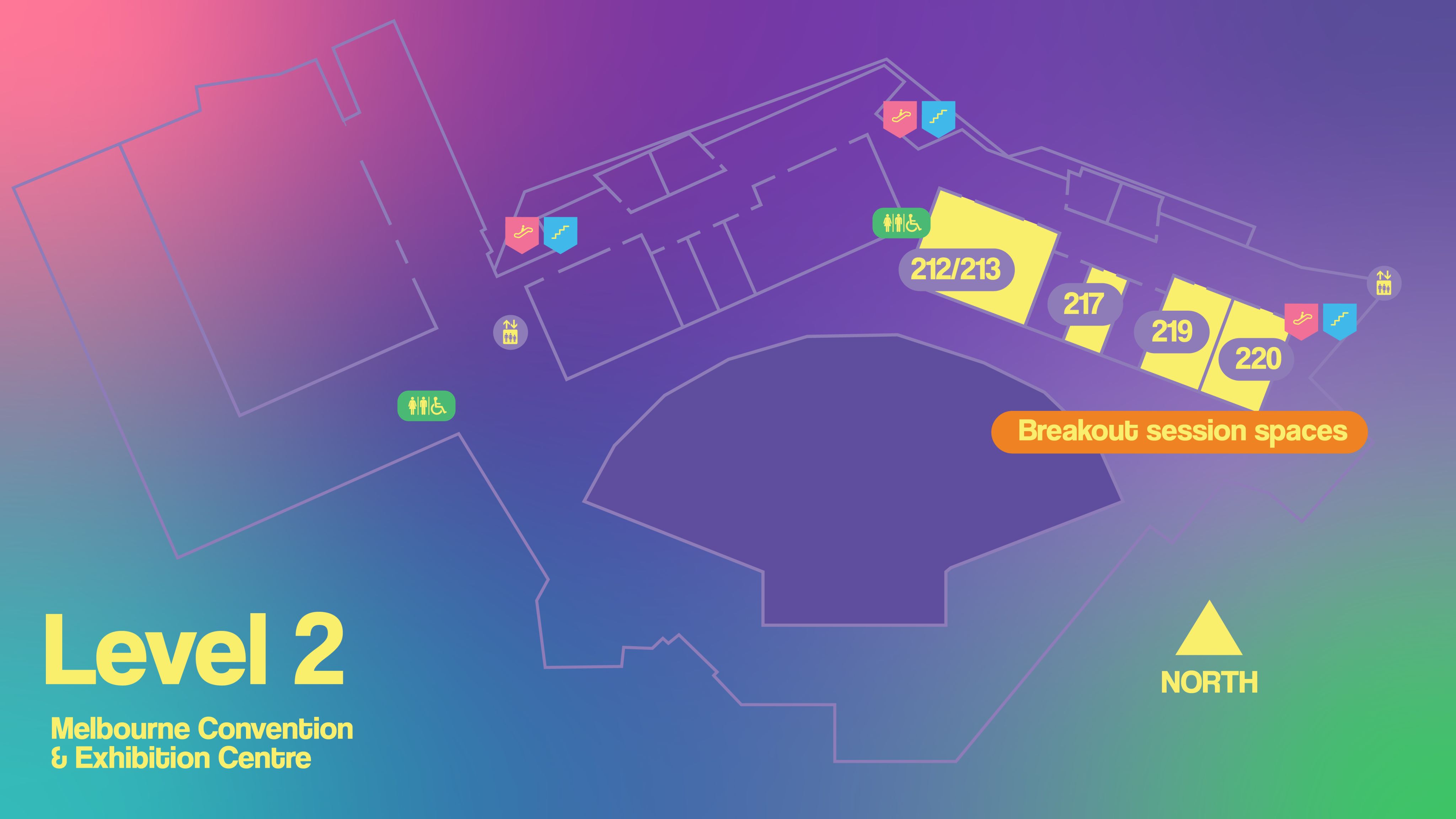 This conference is taking place at the Melbourne Convention and Exhibition Centre (MCEC), with your main sessions taking place in Plenary 3 and your concurrent sessions taking place on level 2 in the following rooms:
