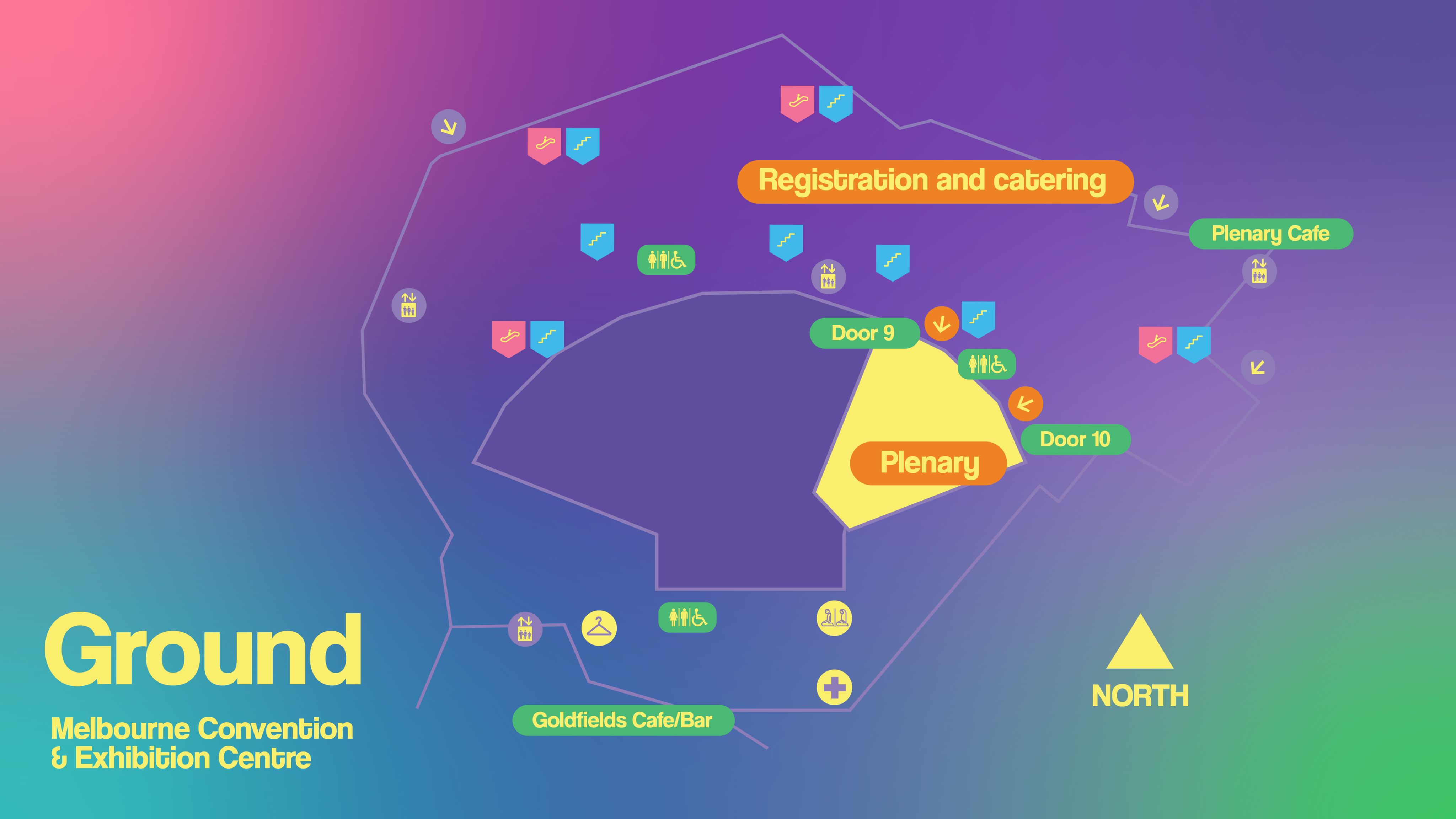 A map of the Melbourne Convention and Exhibition Centre (MCEC) has been provided to you. Please familiarise yourself with the map to locate your concurrent sessions ahead of time. Both keynote and concurrent session locations have been highlighted.